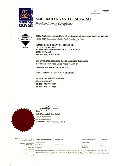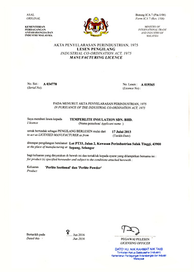 Temperlite® Insulation Sdn Bhd, formerly known as ITW Insulation Systems Malaysia Sdn Bhd, was incorporated on 23rd October 1991. Temperlite® principal activities are manufacturing and selling of expanded perlite powder (cryogenic and construction grade ) and perlite sectionals ( pipe covers and slabs).