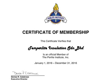 Temperlite® is a member of the Perlite Institute, Inc., which is an international association of perlite miners and processors, founded in 1949 and has its headquarter in Pennsylvania, USA. The products that Temperlite® manufactures conform to the Perlite Institute’s standards and the relevant ASTM standards.